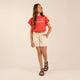 Conjunto en tejido de punto de camiseta silueta crop con estampado en el frente y la espalda combinado con sudadera silueta amplia, con cintura elástica, cordón funcional, bolsillos cargo funcionales y botas elásticas. Este conjunto es color blanco y anaranjado y su composición es de 99% algodón, 1% elastano. Encuentra...